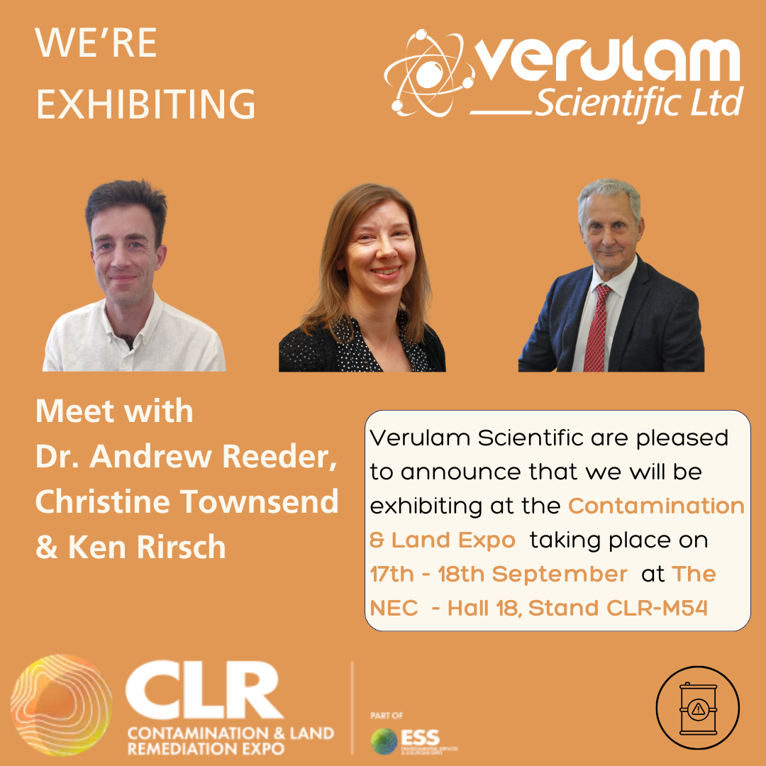 Verulam Scientific is delighted to announce our participation in the Contamination & Land Remediation Expo, taking place on the 17th and 18th of September at the NEC in Birmingham.